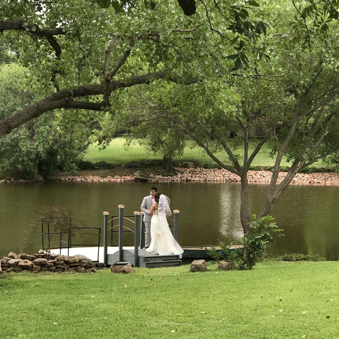 Large grassy area ok to set up outdoor tent. Inside the house can be used for bride and bridal party dressing areas. Inside house the kitchen may be used. Pool deck has room for tables. Barbecue grill. Fishing or canoeing on the pond.