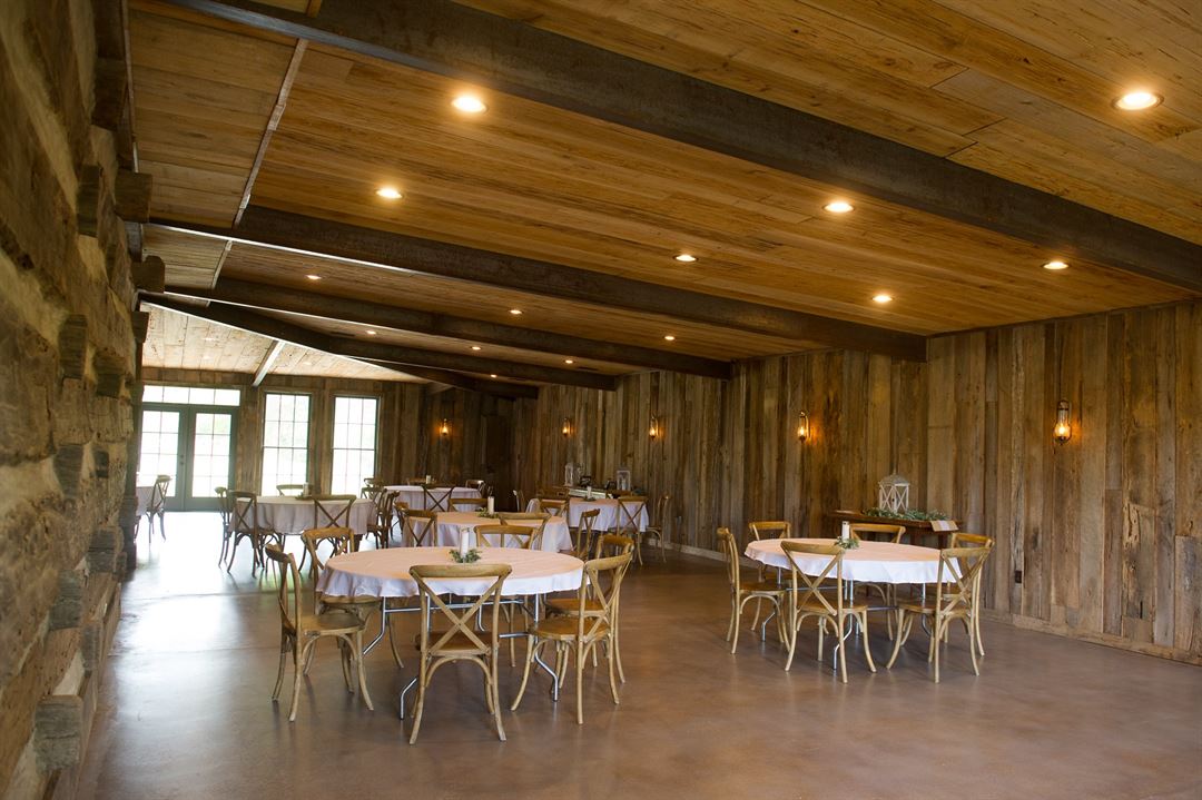 Green Frog Farm is a historic barn wedding venue with several staging options that include elegant Latham Barn, rustic May Chapel and beautifully landscaped grounds for outdoor weddings. In the Latham Barn interior, a wall of windows with french doors open onto a bluestone patio overlooking a small lake. Exposed beam ceilings, an original log barn entryway, and wrought iron chandeliers create a rustic yet elegant setting. May Chapel was originally built in the late 1800's and was restored with period details including exposed hand-hewn log beams and the original pews.
