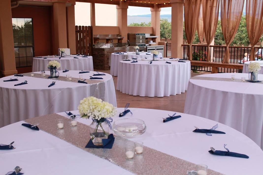 The Patio at Heart of the Desert overlooks the pistachio groves and is available for private parties, banquets, and receptions. There are two levels to The Patio for you to enjoy. The upper level is 1,100 sq. ft. and will accommodate 60 for a seated banquet and up to 100 for standing receptions. The lower level is 1,250 sq. ft. plus a 144 sq. ft. stage. This area will accommodate 80 people seated for dinner, or less if space is left for dancing. Both levels have perimeter bench seating which is in addition to the table seating.