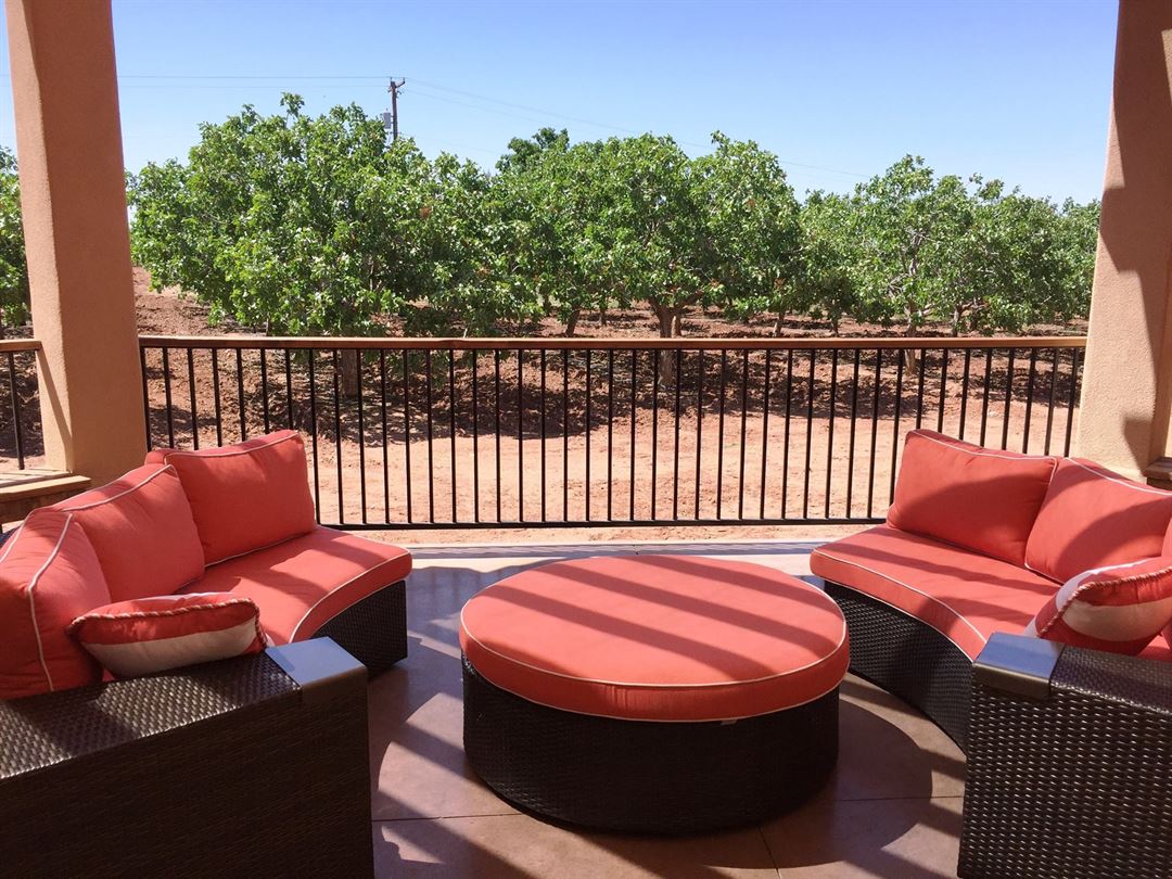 Looking for the perfect place to relax and unwind? Join us on our Tuscan inspired patio for a glass of wine, some pistachio ice cream or your morning coffee. Overlooking our pistachio groves, it’s the perfect place to entertain your family and friends.