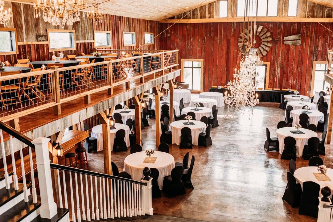 With more than 7,500 square feet of rustic elegance, The Legacy provides intricate woodworking, charming antiques and natural barn-wood walls. Four large crystal chandeliers hang down the center of the ceiling catching light from the numerous windows and doors. The magnificent black and white staircase allows the special couple to make the grandest of entrances.