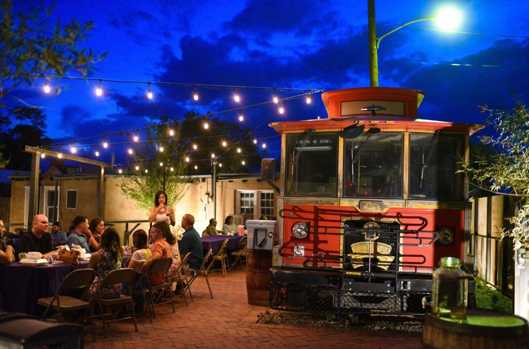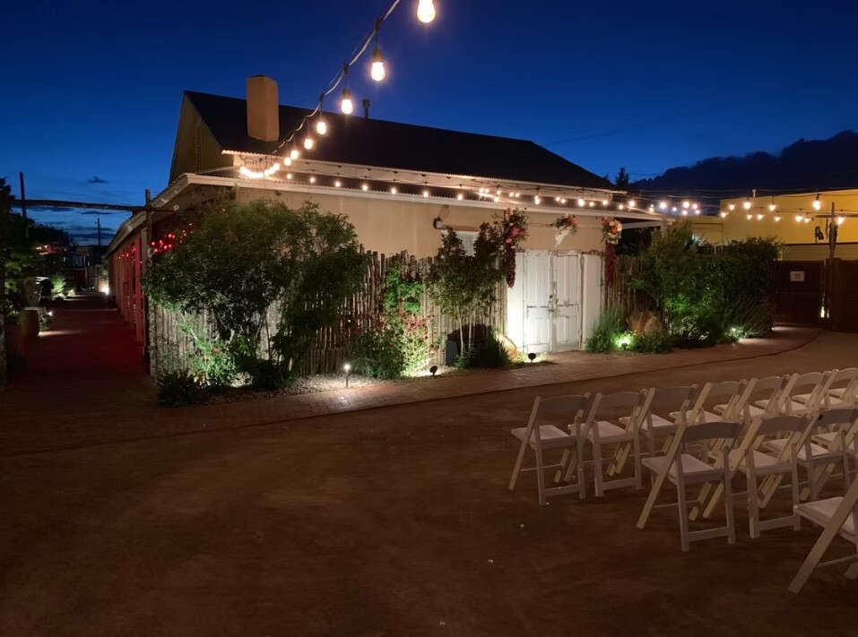 Celebrate your event on the storied grounds of a 19th century former brothel & saloon. Featuring three suites, fire pits, wedding arches, historic trolley car, painted lady mural, glamping tent and more.