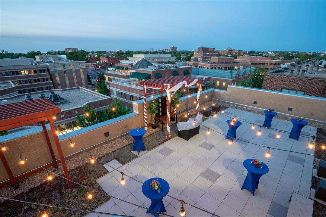 The hotel just completed a renovation of our sleeping rooms and all public areas, so we have a beautiful new product for your guests! Our spacious rooms with one King bed or two Queen beds feature a work desk with ergonomic chair, 42-inch flat screen television, microwave, refrigerator, in-room safe, Keurig single-cup coffee-maker. Complimentary wireless internet is available in all guest rooms and meeting space. Our Fitness Center is complimentary and open 24/7, and our rooftop terrace provides views of the City.