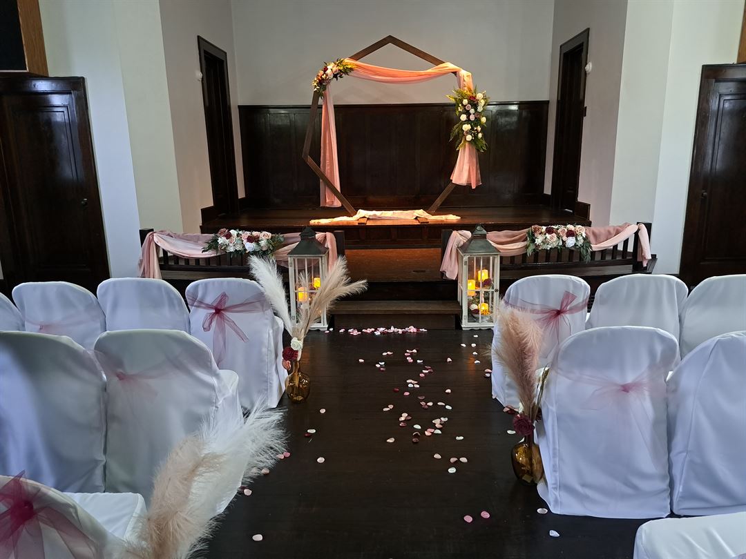 Beautiful intimate banquet hall. We are an old church that has been restored into a banquet hall. We offer space for your ceremony, reception, bridal suites to get ready in and a prep kitchen.