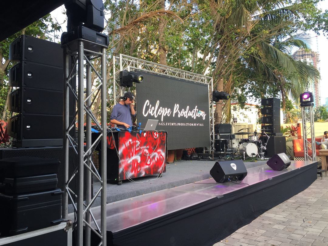 We have Audio, Lighting, Led Video Wall, riser, runaway, DJ, etc.
