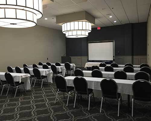 We can accommodate a variety of size meetings from a 350 person conference to a simple one room board meeting. We have a 7,500 square foot atrium that is ideal to accommodate exhibits or dining. Our 4,500 square foot ballroom is divisible in 4 separate equal meeting spaces of 1,128 square feet each, as well. High Speed, monitored and secure wireless internet, and state of the art A/V equipment is available. Chef Kenny offers an array of choices for dining including customized themed options. For further details or to schedule a site visit, please contact our Sales Department.