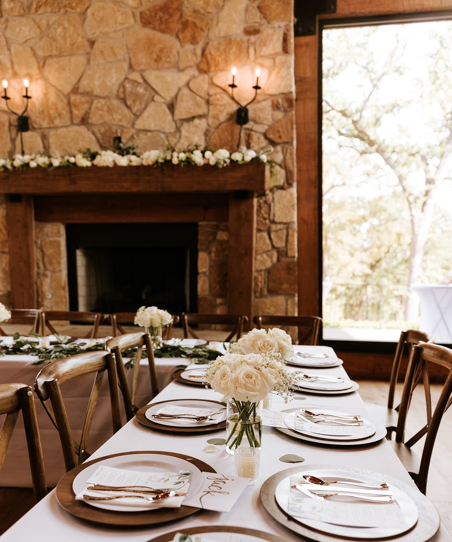 From floor-to-ceiling windows that flood the space with natural light to indoor and outdoor fireplaces, every detail of Timberview Lodge enhances its romantic charm. Nestled in the beautiful Texas countryside, the venue features picturesque bridges, a charming wishing well, and a serene water feature—perfect for breathtaking wedding photos. One of the most memorable highlights? The scenic walk behind the venue leading to the covered ceremony pavilion, where you’ll say “I do” with an unforgettable backdrop. And the sunsets here? Absolutely stunning.