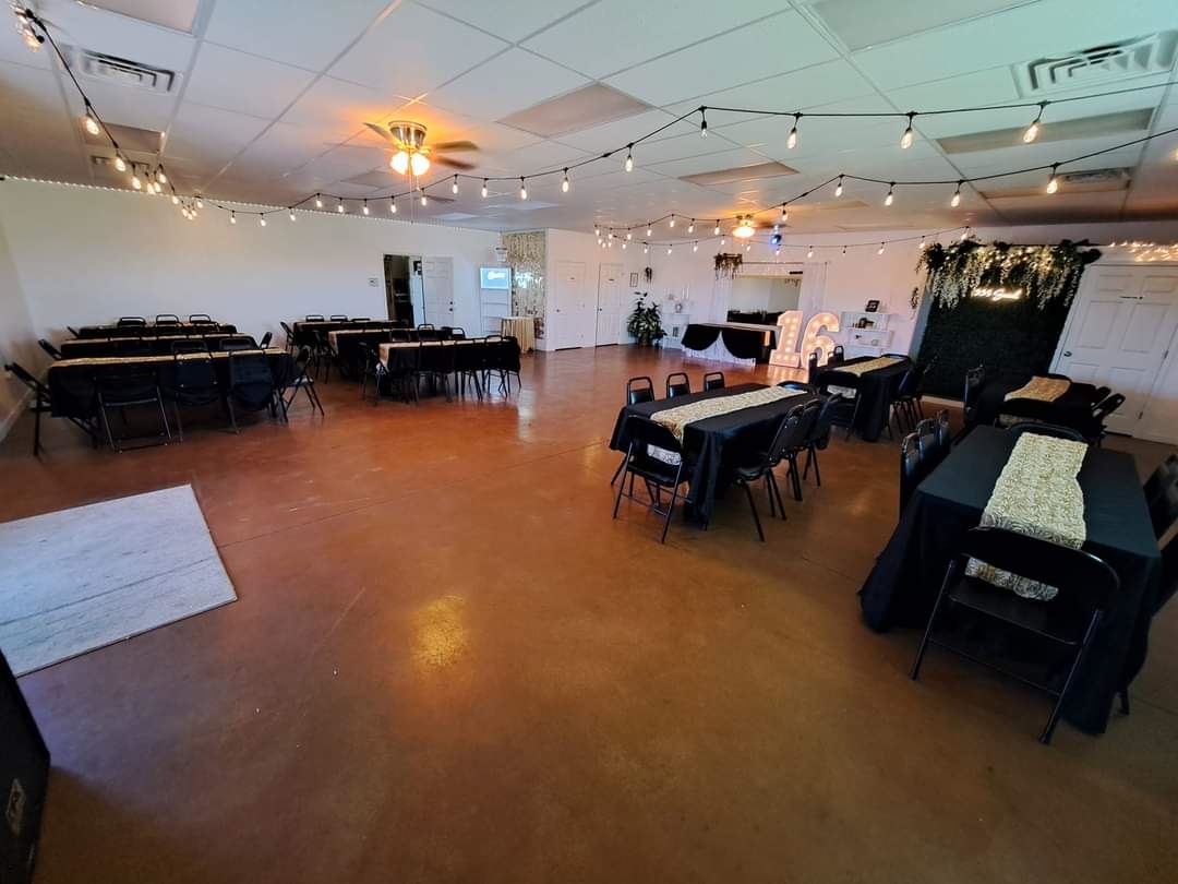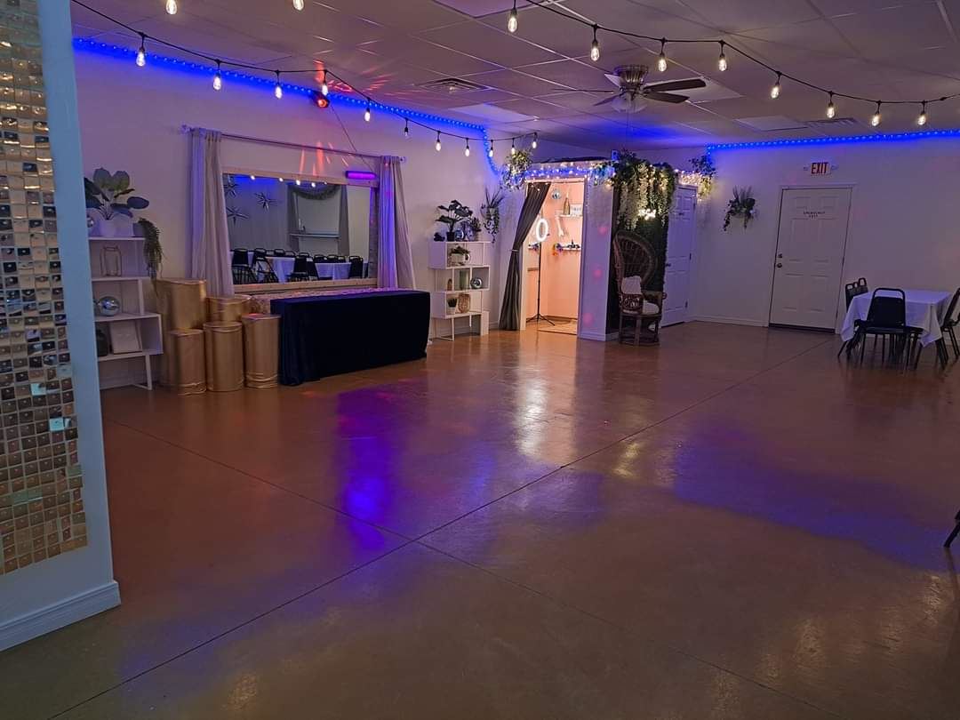 Our venue is the perfect place to host your small event, whether it's a baby shower, birthday party, corporate meeting, or even wedding! We offer a ton of freedom as you can bring food, drinks and decorations as you please. We can accommodate up to 75 people and provide tables and chairs. We have a neatly decorated space, and can provide linens, chair covers, some decorations, a selfie room with props and a bounce house. We also have a full kitchen, 2 spacious restrooms and ample parking and outdoor space. There are LED lights and laser lights over the dance floor area, a sound system and WiFi.
