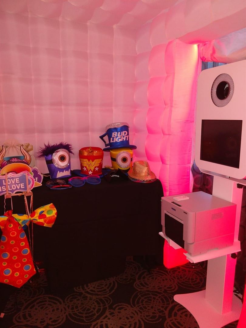 photo booth 360 that sends a video which is also put on a postcard and music.