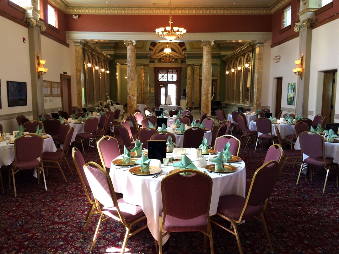We welcome you to consider hosting your wedding, meeting, special event, or party in AMOA's beautiful, historic space in downtown Anderson. With three separate areas on the main floor, we can easily accommodate groups of 20 to 175. Surround yourself with a beautiful and unique atmosphere including galleries filled with original works of art, a stained glass dome in the rotunda, marble columns with gold leafing. Attendees will always remember the event in this beautiful setting. AMOA is an unforgettable venue to honor parents or children at their anniversary, birthday, or graduation open house.