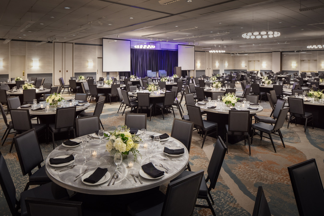 Our newly renovated hotel offers over 8,000 square feet of versatile meeting and event space, designed to accommodate gatherings of all sizes. The centerpiece, our Grand Ballroom, can host up to 460 guests and features elegant design, modern lighting, and built-in audiovisual capabilities. For smaller social or corporate events, the ballroom can be divided into multiple sections, providing flexible layouts for 80–250 guests or intimate breakout spaces.