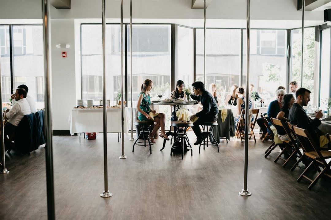 Polarity's studio in Ann Arbor offers a unique and intimate space ideal for: birthday, holiday, bachelorette/bachelor parties, corporate events, showers, wedding receptions, and more. The interior features high ceilings, and natural light with beautiful windows and mirrors. Our space is comfortable for up to 80 people, and we'll help curate your perfect event! A professional sound system and incredible acoustics enhanced by our 22' cathedral ceiling. The reception desk duals as a full bar, and all events are BYOB with an uncorking and/or mixologist fee.