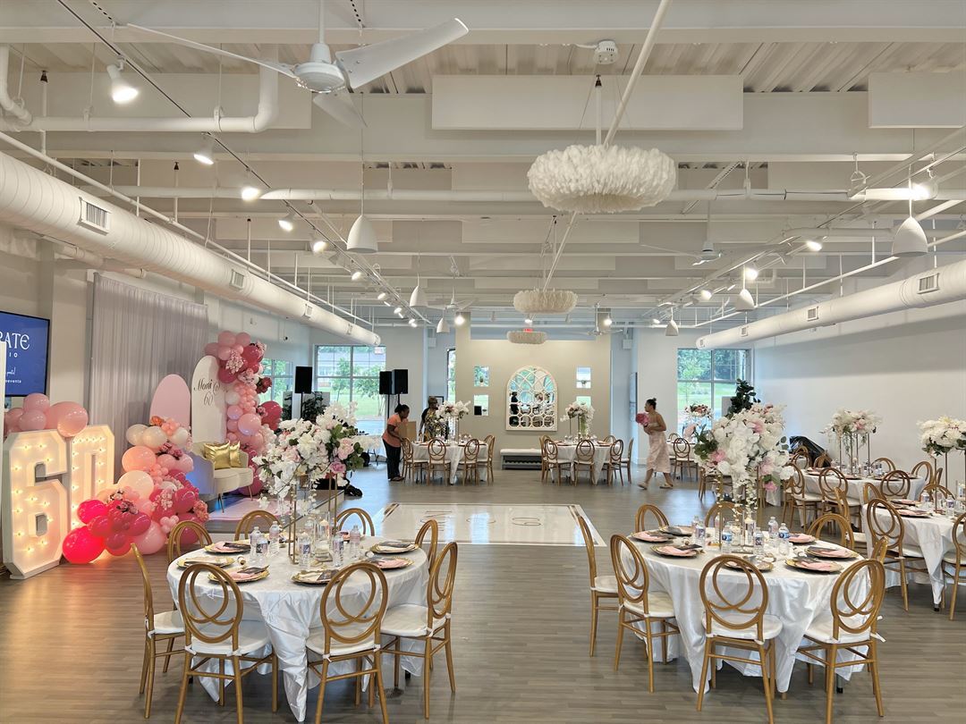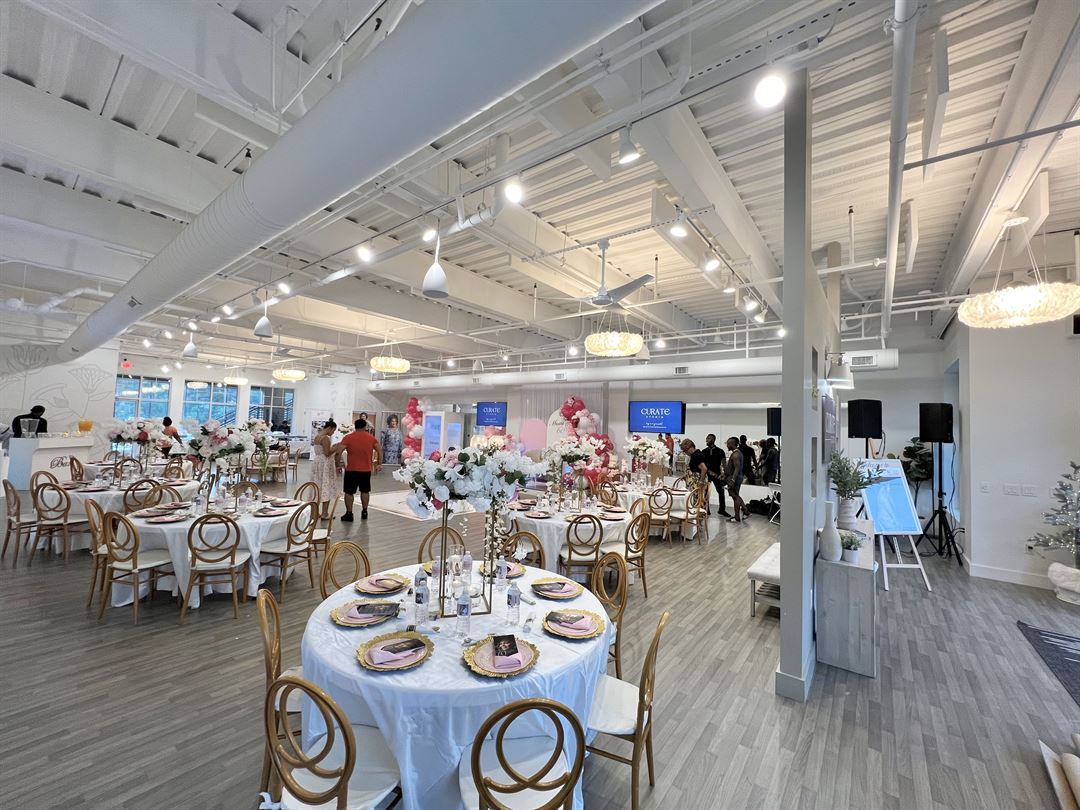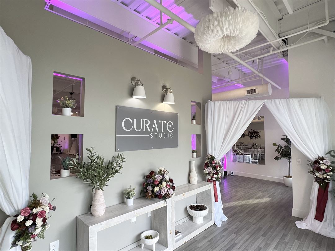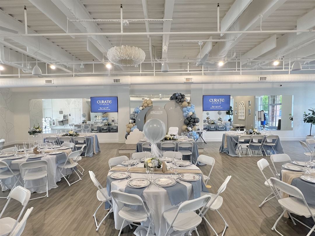 Located in Apex, NC, Curate Studio is a beautiful venue space feature 2,800 square feet of open floor space. This simple, yet highly versatile space, allows our clients to host their social celebrations and corporate events.