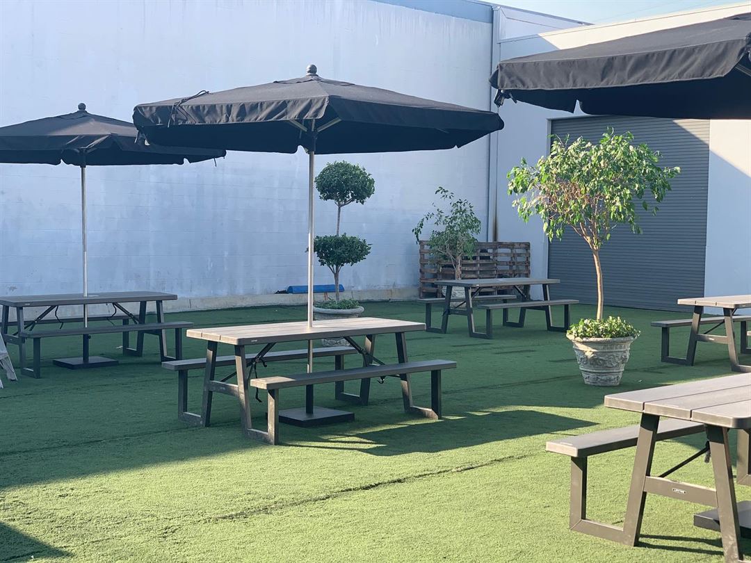 We have a very large and open brewery along with a very large patio. The patio has canopies, umbrellas, heaters, etc.