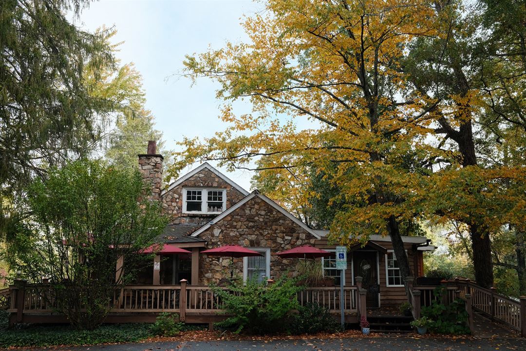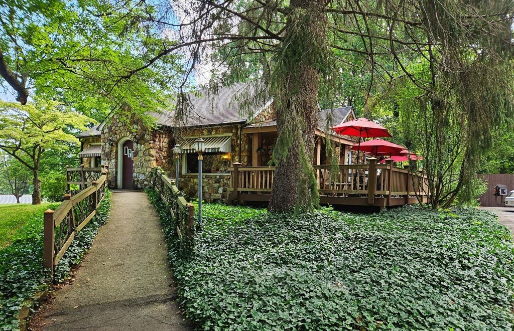 Our event space is set in an old stone cottage, built in 1939. It has several different rooms, a large shaded outdoor patio area & mulched picnic area. We have free, private parking, are handicapped-accessible, and welcome dogs on our patio. Our max capacity is 30 people.