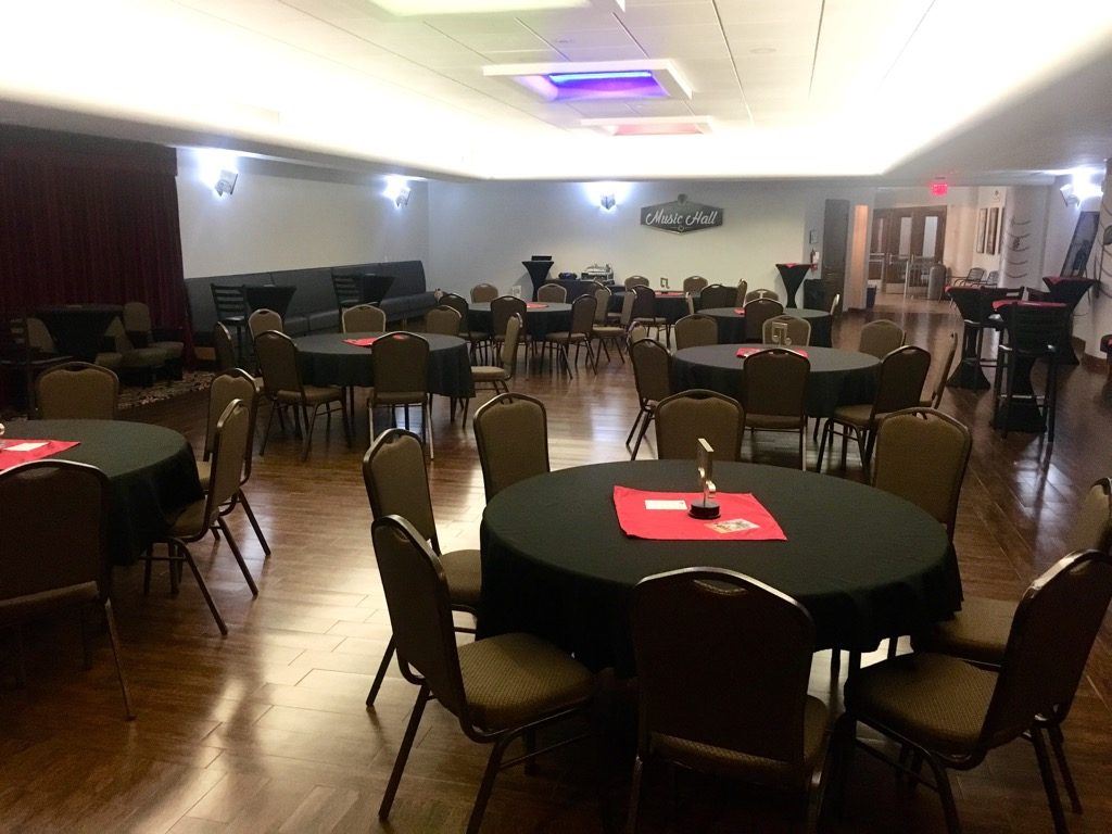 Our venue seats 730, and our Hospitality Room (rented with the Music Hall, or separately for smaller occasions) can accommodate 100 (seated).