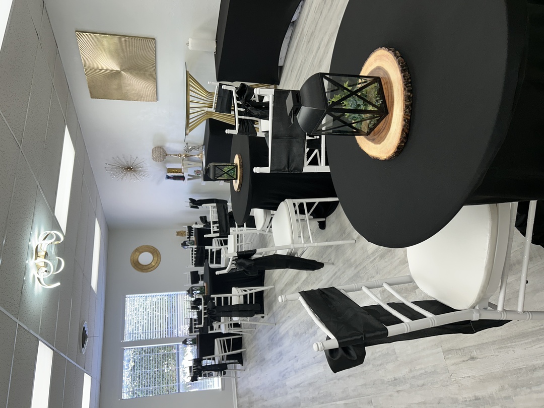 We are an all-inclusive small venue service company. Pricing includes white Chiavari chairs, white linens & clear centerpieces. Give us a call or visit our website @ www.skipthecourthouse.com.