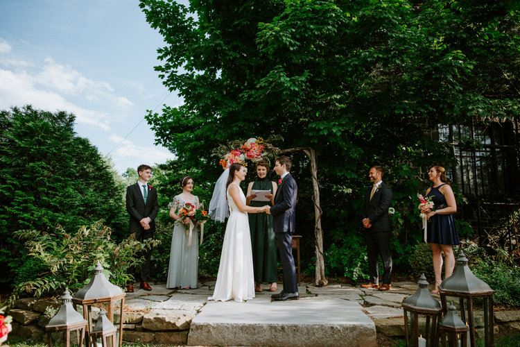 Homewood, a special event venue in Asheville, NC, is an ideal destination for rehearsal dinners, weddings, receptions, and gatherings. Homewood is a beautifully restored 1920s stone manor located in Asheville's post-Victorian historic district of Montford. The elegant castle was originally built as a private home. The elegance of the 1920s luminesces from original wrought iron chandeliers and alabaster sconces, casting graceful lighting from the 20-foot ceilings of the Great Room to the original hardwood floors, cherry walls, and grand Appalachian stone fireplaces. Conveniently located within a mile of downtown Asheville, Homewood offers 200 free, designated parking spaces, and is located in a neighborhood setting. The Great Room seats 110 people for dinner, or up to 150 with cocktail seating, with space for dance floor and DJ or band. Homewood is fully handicap-accessible. The beautiful and lush surrounding grounds provide additional outdoor space, including our garden ceremony site.