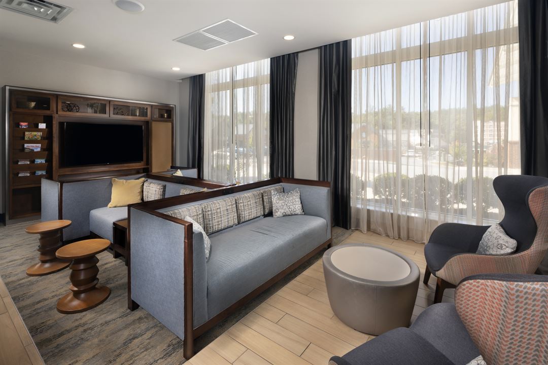 Maintain your wellness routines in our modern fitness center, take a refreshing dip in our inviting indoor pool, or indulge in relaxation in the hot tub. On our terrace, soak in the warm sunshine and the crisp mountain air that defines Asheville.’