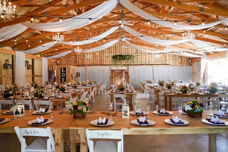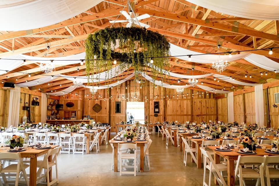 Our wedding packages provide your choice of 3 ceremony/rehearsal sites, one that includes a plan in case of inclement weather, a 3,200 sq.ft heat/cool barn with farm tables and chairs, grooms room, and cocktail garden with lawn games and a fire pit.