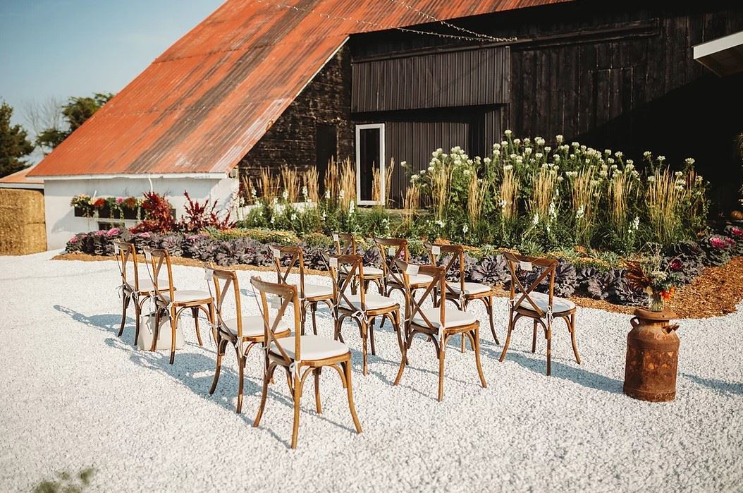 You have exclusive access to our white stoned courtyard and dining building at our main reception site, just a stone's throw down the road. And don't forget our elegant century old dairy barn that is a stunning black and white backdrop for photos, your wedding ceremony site and more! Everything we offer is yours to enjoy exclusively on your special day, in the comfort and privacy of your closest friends and family.