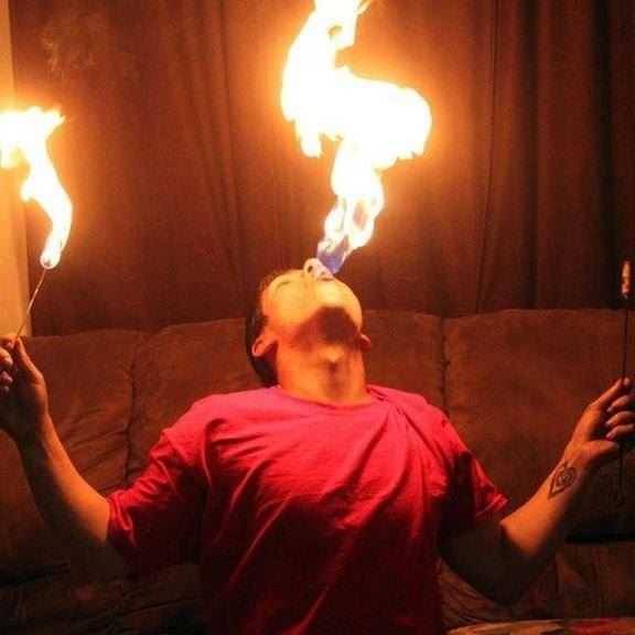 We do acts from walking on broken glass barefoot,Eating real light bulbs Fire staffs, fans, fire eating. Can't have Fire? We can switch out to all LED lighted props with various options on colors and patterns.
