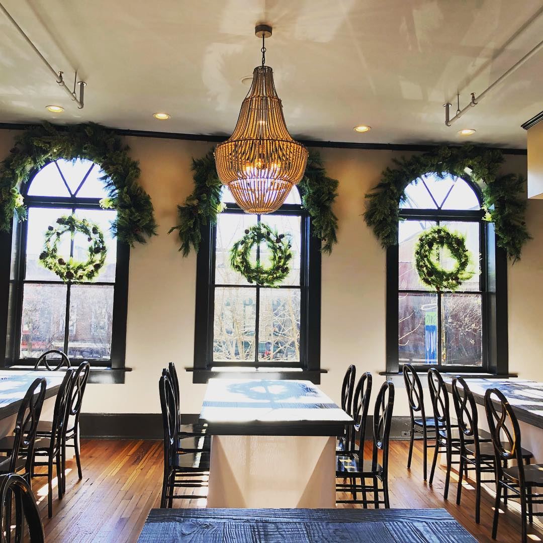 The upstairs location offers a wonderful view of lively Broad Street and the green lawns of North Campus.
