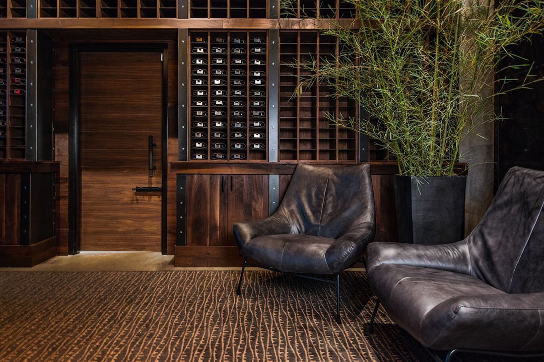 - Main Dining Room: Main private dining room featuring custom wood and leather booths, banquettes and tables. Fit for large formal seated dinners.