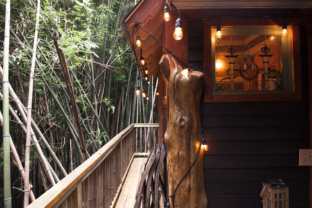 Weddings held at the Atlanta Alpaca Treehouse conjure the words: fairytale, storybook, unique, romantic. Infuse the lush tropical flavor of Bali or Hawaii with the convenience of Atlanta and add llamas and alpacas. Imagine being put on the pedestal of the wrap-around porch of the treehouse, framed by architectural antiques showcasing the warmth of history. Towering stalks of thick, green bamboo frame the scene. Your guests are seated in rustic chairs on the forest floor, wondering if they just travelled to an exotic locale, as you say your “I dos.” The treehouse is lit up like a wood-quilted jewel-box as a backdrop. Llamas and alpacas meander through the bamboo. There isn’t a more romantic place on earth.