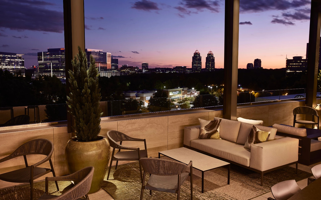 Located on the 7th floor of the AC Hotel Atlanta Perimeter, Bar Peri offers a rooftop setting perfect for unforgettable events. Surrounded by floor-to-ceiling windows and panoramic skyline views, the space blends stylish indoor seating with an inviting outdoor terrace, creating a vibrant yet elegant atmosphere.