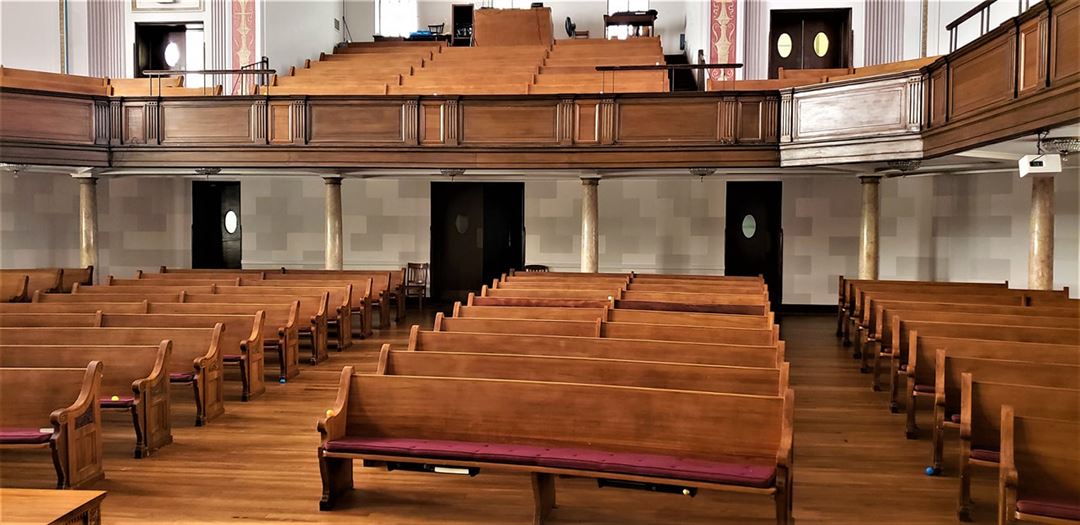 Our strikingly beautiful sanctuary was recently renovated and is often rented for wedding services. It will easily seat 500 people between the balcony and main floor, and has served as the site of numerous choral concerts