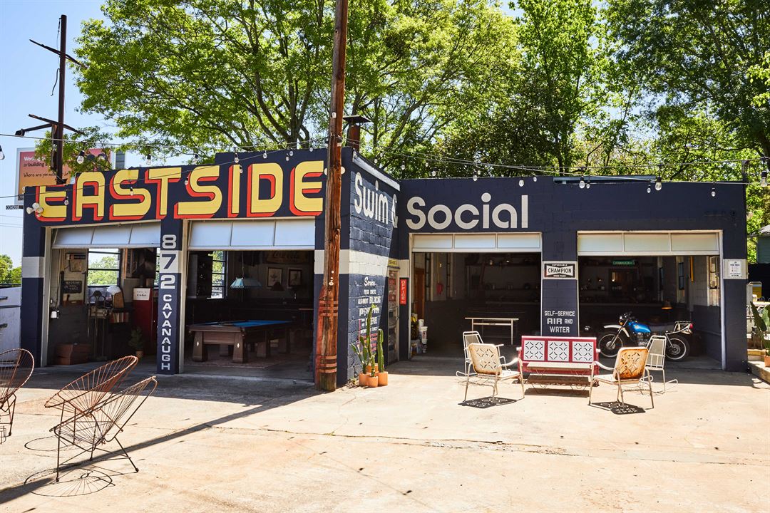 Formerly a motorcycle garage, this beautiful East Atlanta venue features a re-purposed garage interior, swimming pool, ping pong and pool tables, and plenty of outdoor space.
