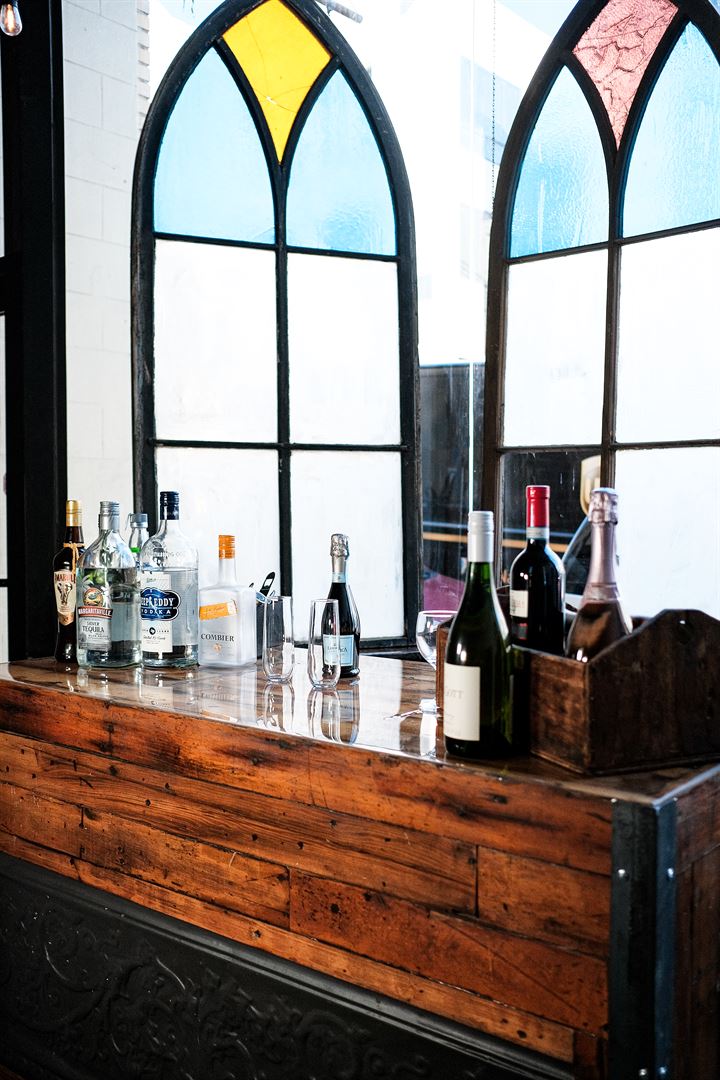 Journeyman's Hall is warm and inviting, featuring high ceilings and stained glass windows that pool natural light throughout the space. The main event space features beautiful red brick walls and wooden furniture that offers a warm and rustic feel. Before you say I do, you can prepare from the get-ready suites, which are complete with mirrors and lighting.