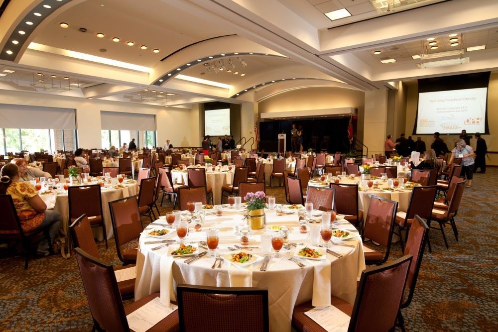 Our meeting spaces can be arranged and set up to meet your event needs. We have experience supporting all kinds of events, from social networking to corporate meetings and conferences. We are here to help. Our flexible meeting and event spaces can accommodate groups up to 500 people. We have a lobby/exhibit hall, large ballroom, amphitheater and boardroom, all with built-in technology and WiFi.