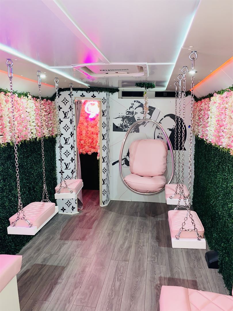 Welcome to Mobile Event Venues of Atlanta! We’re an all-pink, all-girl, Mobile Event Venue and Content Studio located in Atlanta and soon my hometown Houston, TX. MEVA specializes in mobile celebrations that are uniquely designed for the social media butterfly, influencer, or photographer. This bus is perfect for bridal showers, birthday milestone celebrations, bachelorette parties, girls trips, Winery experiences and so much more!