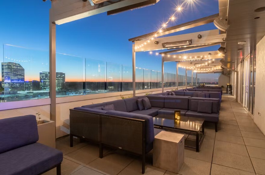 Rosé & Rye is a sophisticated indoor/outdoor rooftop lounge perched atop Hotel Colee in Atlanta’s Buckhead neighborhood. Accessible via a glass elevator ascending 125 feet, it offers panoramic views of Buckhead, Lenox Square, and Midtown. The venue features two outdoor patios, a 66-foot mural by local artist Chris Veal, and a floor-to-ceiling light installation, creating a unique ambiance.