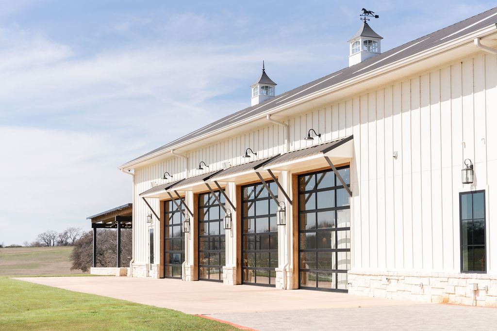 Bella Cavalli Events is a true country chic wedding venue; located just 45 minutes north of the DFW metroplex in Aubrey, Texas. We are situated on 130 acres with stunning views, spring fed streams, rolling meadows and towering groves of trees. We are flexible with vendors and offer several unique spaces indoors and outdoors for our clients to enjoy. Our "Carriage House" is a 4000 sq ft building that can accommodate up to 200 guests (indoors). This stunning black and white modern barn has natural light, custom, glass floor-to-ceiling garage doors, beautiful spacious suites, a prep kitchen, a grand staircase, exquisite chandeliers, a cocktail area with hightop tables, outdoor fire pits, s'mores fire pits & a lounge area. We have many amazing animals on property that can be incorporated into any cocktail hour, such as Queen Sheba the camel and our beer burros: Hot Tamale, Chili Bean, and Sopapilla. We encourage couples to take a tour and see how special Bella Cavalli truly is!