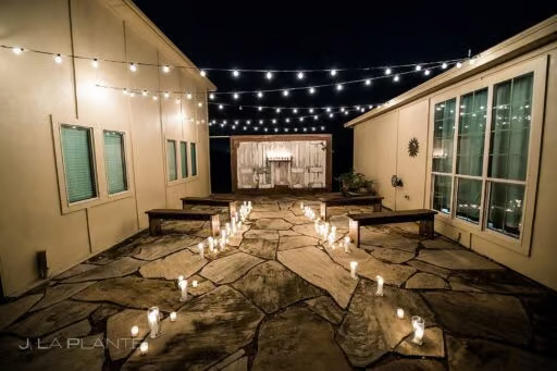 With indoor and outdoor event spaces, our setting is the perfect backdrop for a daytime or evening event. Enjoy the beautiful rock patio with archways, romantic lighting, and shade cover in our Tuscan Inspired Open-Air Courtyard or, say "I Do” in our romantic and intimate chapel in the woods.