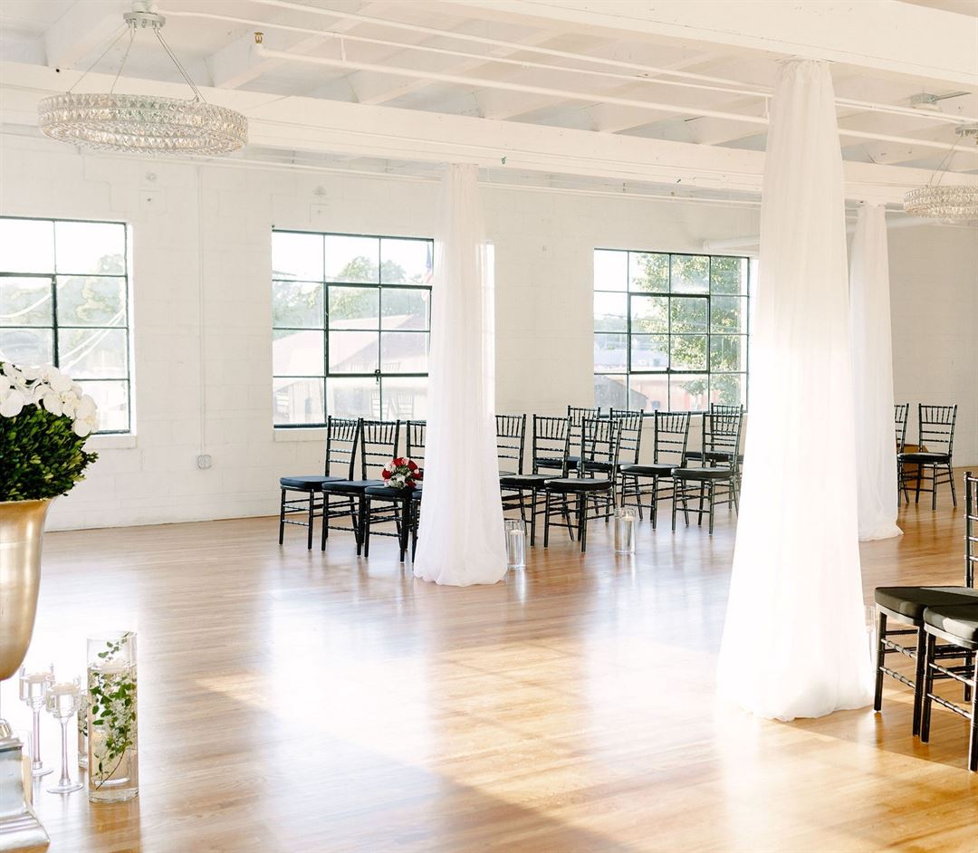The main floor of the Dormitory includes a lobby, cocktail (studio) area and warming kitchen. The studio or first floor cocktail area is also used for conferences, meetings, showers, small parties and group activities. The large ballroom/ceremony and banquet hall where your event will take place, is situated on the second floor of this urban chic venue.