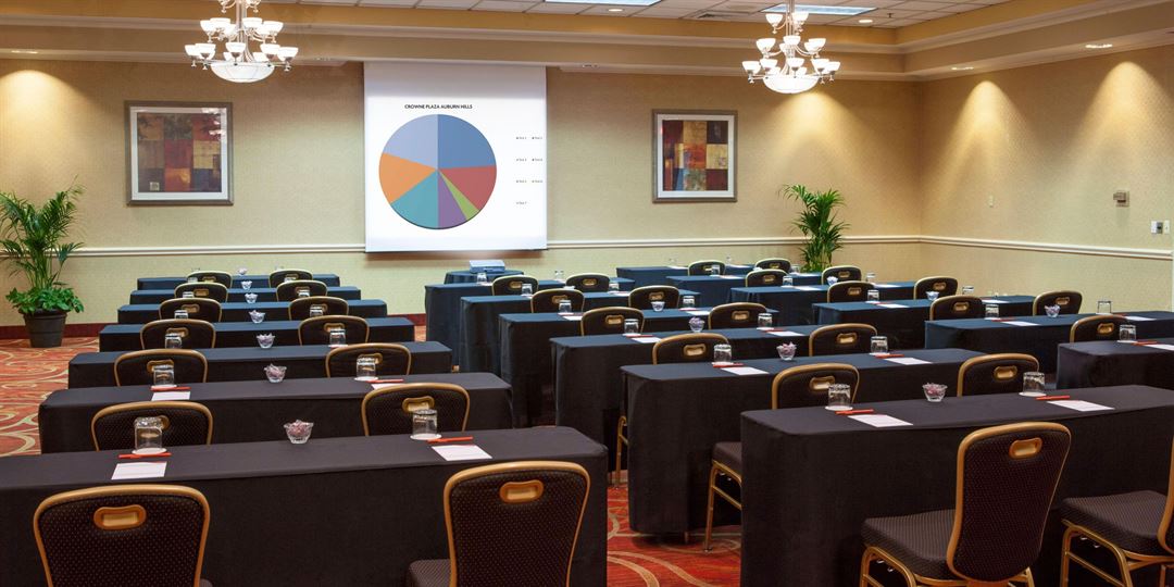 Located North of Detroit, the Crowne Plaza Detroit - Auburn Hills Hotel is newly renovated and the place to meet in the metropolitan area. We have 4,500 square feet of meeting space that can be tailored to fit the needs of your gathering. Our University Ballroom can accommodate up to 150 guests for a sit-down dinner, or up to 200 guests for a standing reception. Our hotel sales team will work with you to make your meeting a success.