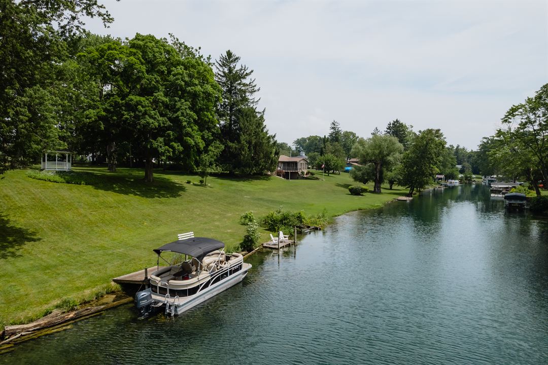 The kitchen itself is a chef’s delight, complete with everything needed for culinary creations, along with a cozy dining table and a charming reading nook overlooking the serene backyard and waterfront. A convenient half bath completes the first floor.