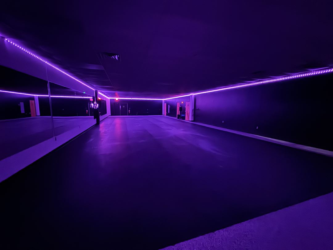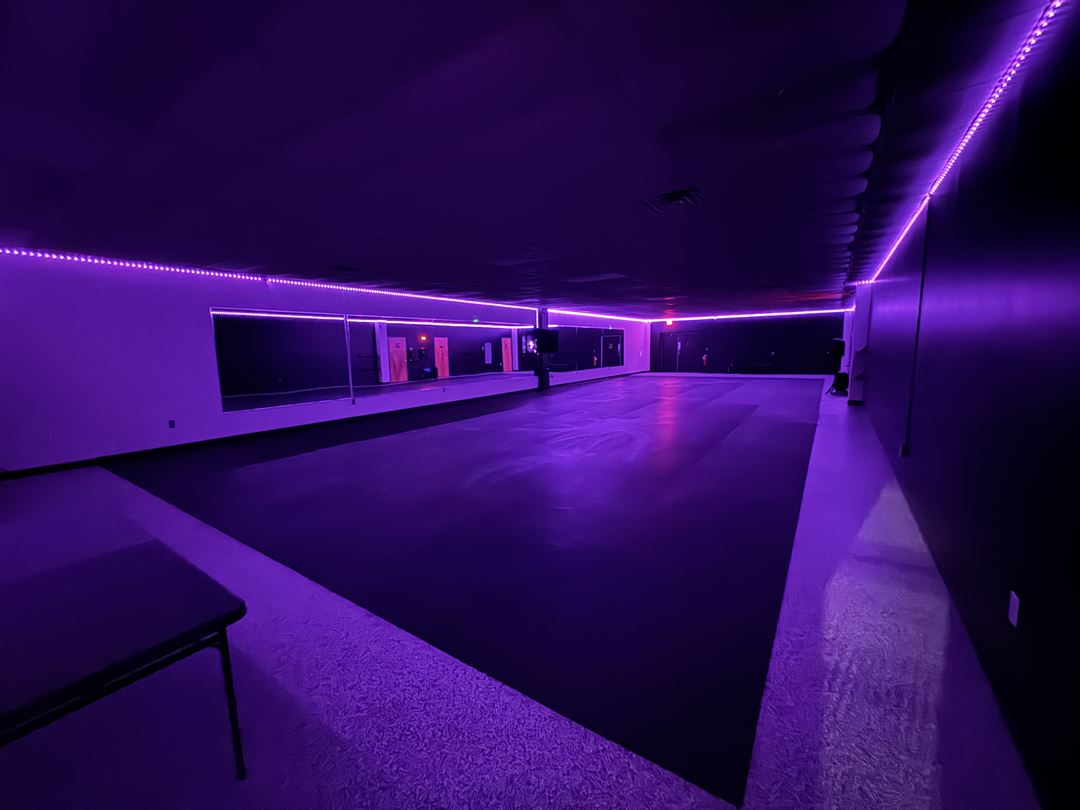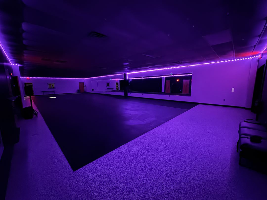 We are located next door to a dog grooming business as well as a sports training facility for kids. This is a storefront location in a small plaza but has the biggest space. The total space is 3,300 square feet with the main studio floor being 2,500 square feet. There's a front office, a lounge/childcare room, along with 2 bathrooms and a shower.