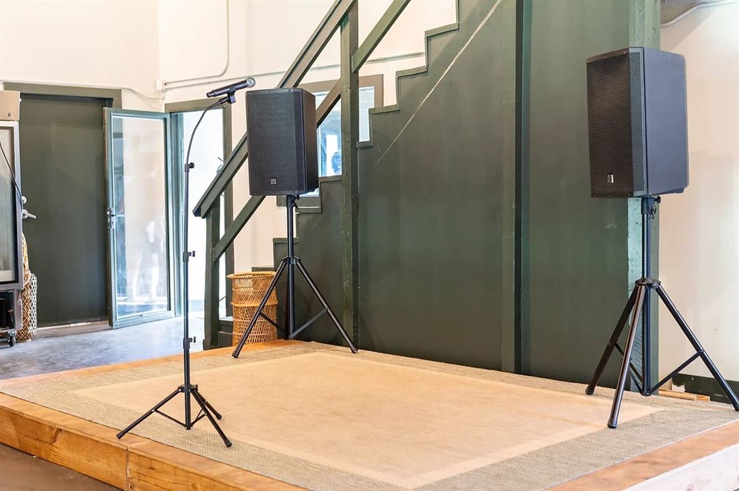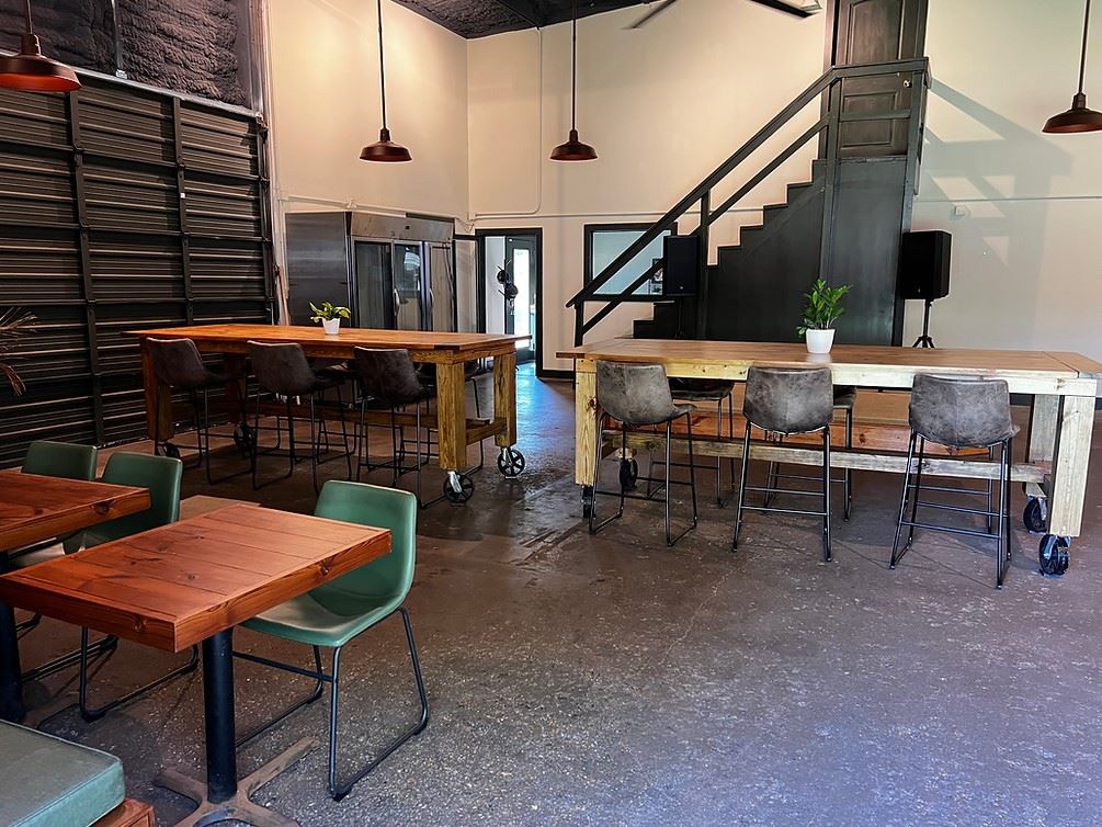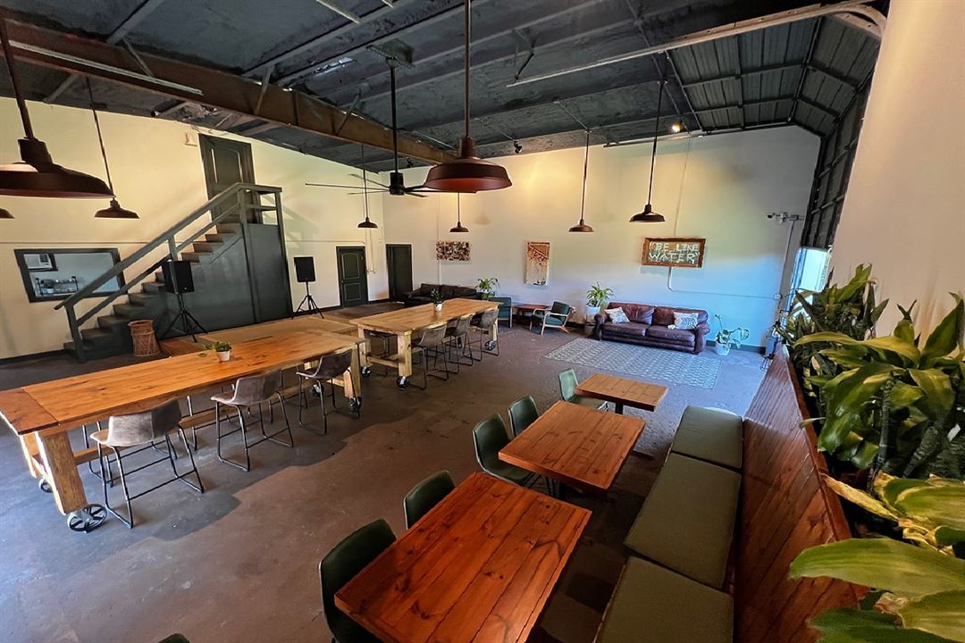 A unique and comfortable indoor and outdoor event space holding up to 120 people indoors + 80 people outdoors, seating available, air conditioned interior and many amenities onsite.