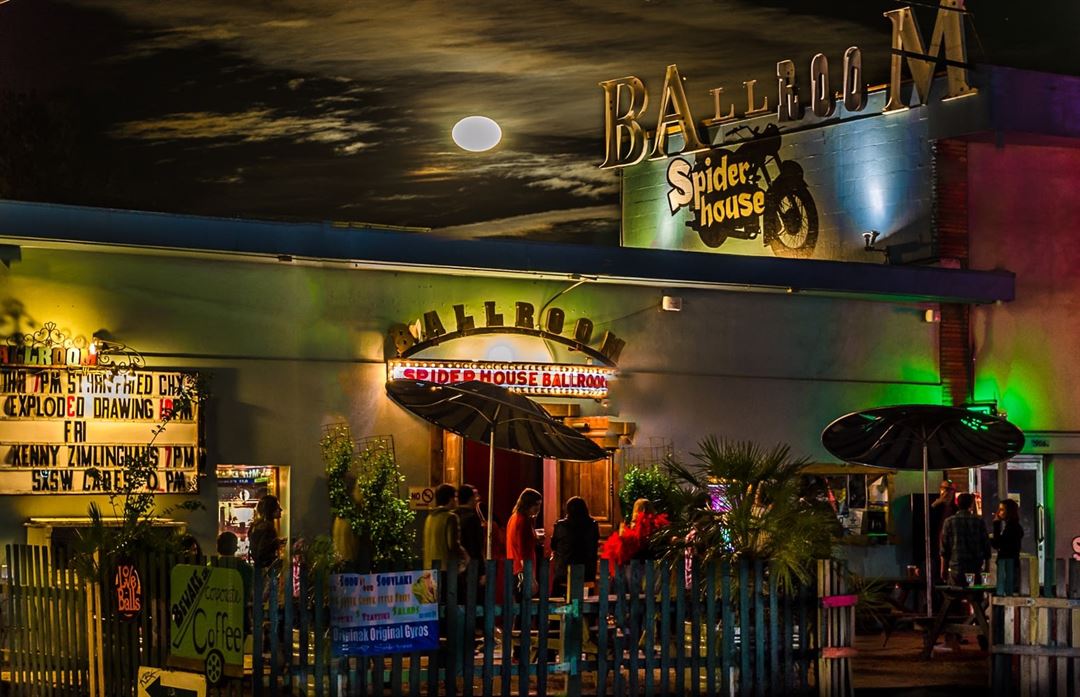 One of Austin’s legendary hotspots since 1995, Spider House Ballroom offers a laid back environment for it’s patrons to meet friends over delicious specialty cocktails and an artisan inspired menu each day and night. Work remotely courtesy of the free Wi-Fi until 2AM every night. The inside bar offers plenty of nooks and crannies for work or pleasure. Featuring gourmet coffee with a wide selection of local and craft beers, a seasonal wine list, full bar, as well as refreshing cocktails that feature fruity concoctions from local favorites JuiceLand. Hungry?! Spider House offers many food truck options!