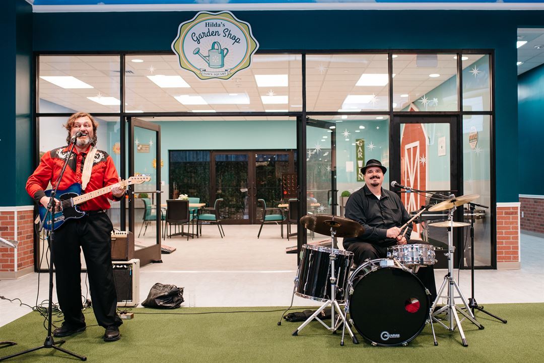 Town Square transports people back to another time and place with the look and feel of a 1950s small town. Party attendees can explore multiple unique activity rooms, called storefronts, all designed to spark memories of the past.