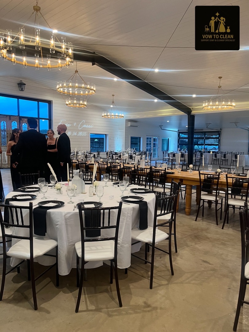 Vow to Clean specializes in professional post-wedding and event cleanup across Central Texas. We help couples, coordinators, and venues by handling teardown, trash removal, and venue restoration after weddings, receptions, and corporate events. Our reliable, uniformed team ensures the space looks spotless before the night ends — saving you time and stress.