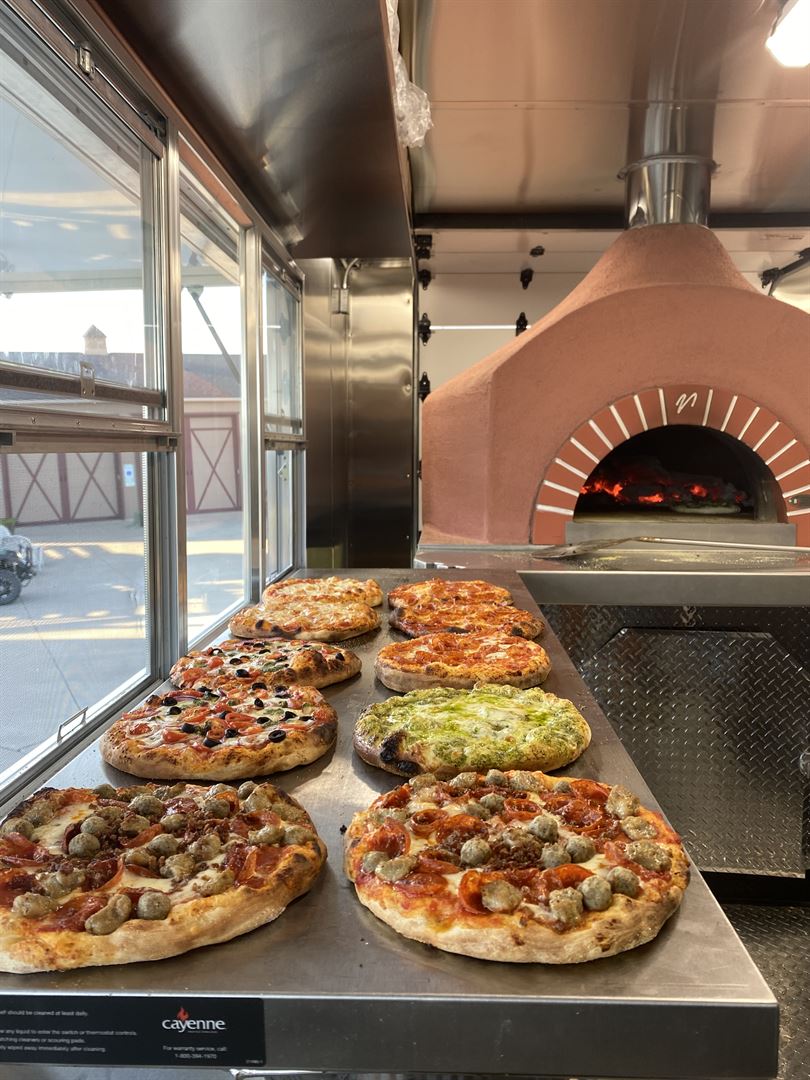 Food Trucks Catering serving Woodfired Pizzas, Piadinas, Hot Pasta, Salads, Appetizers, Desserts, and more.