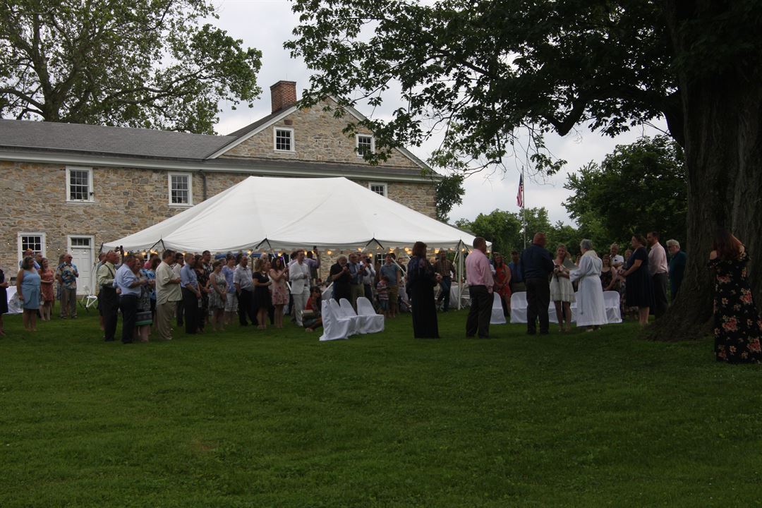 Welcome to the Haldeman Mansion venue. The Haldeman Mansion is located in Bainbridge, Pennsylvania overlooking the Susquehanna River. The mansion interior is under restoration and two rooms will be completed by the end of this year- capacity 75 people, plus a new plaza has been built between the mansion and the summer house. The Mansion grounds will accommodate large weddings and a tent is provided. Proceeds go to the restoration of the mansion.