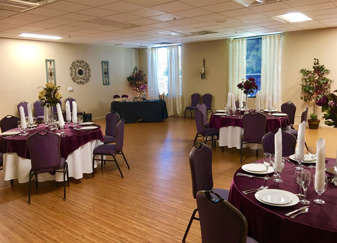 All rentals include set-up, tables, chairs, use of the prep kitchen, commercial food warmer, refrigerators. Please contact us for a tour of the venue and all details about rentals.