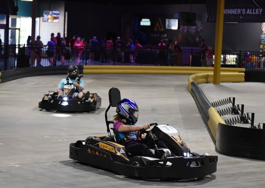 At Amp Up Action Park in St. Louis, there’s guaranteed fun at every turn! Our attractions include pro kart racing, axe throwing, laser tag, virtual reality, high-ropes ninja course, soccer pool and lots of arcade games and prizes.